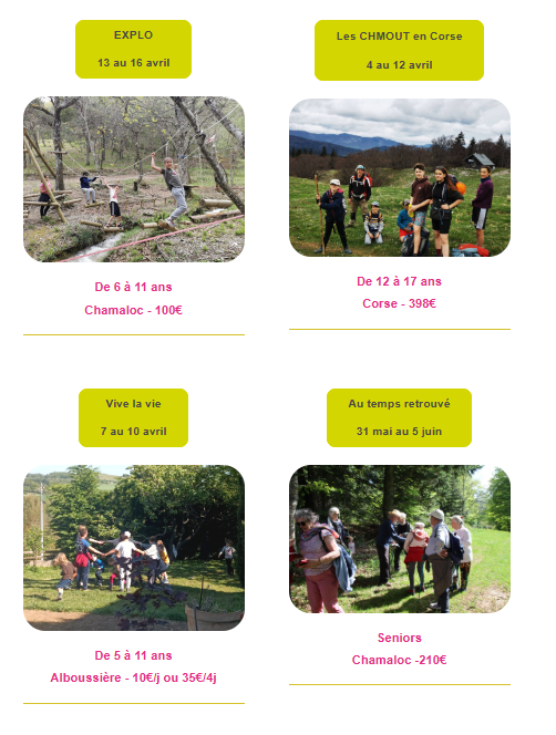 L’inscription aux séjours de printemps de l’ACVE est ouverte. Voici un aperçu des séjours :