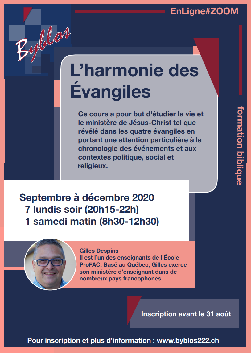 Inscrivez vous à la formation sur « L’harmonie des évangiles » Téléconférence
