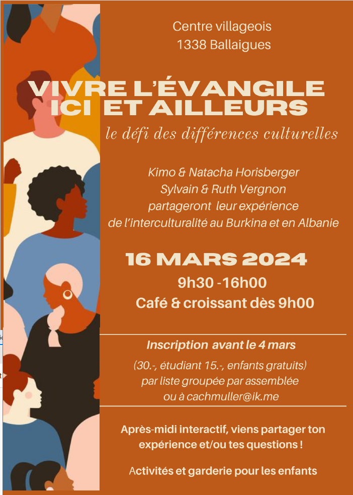 Inscription avant le 4 mars pour le repas (30 CHF, 15 CHF étudiants) par la liste groupée de votre assemblée ou à cachmuller@ik.me