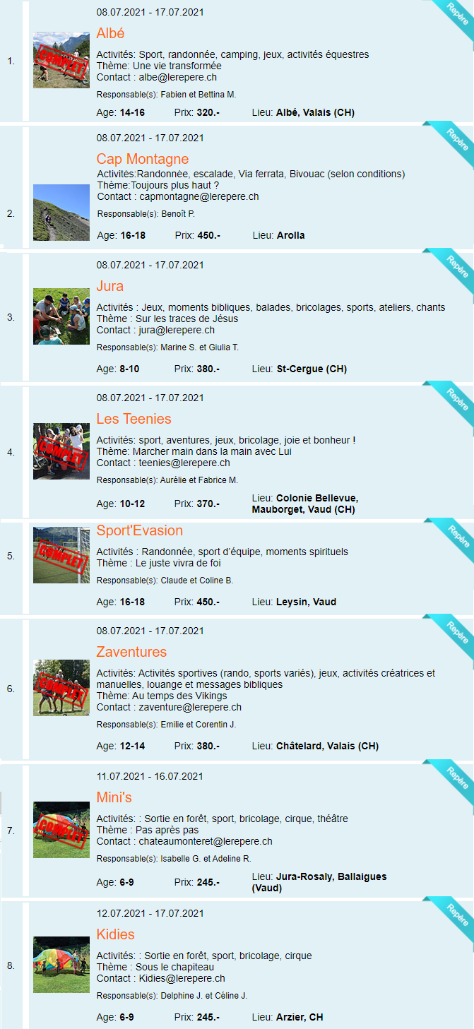 Voici un aperçu des séjours prévus cet été.