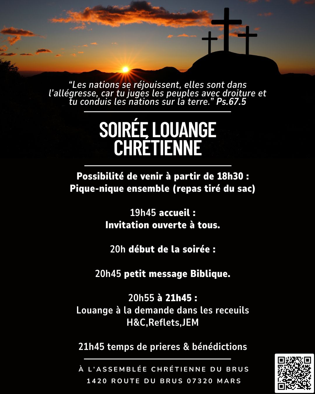 le Lundi 11 août à 20h à l’assemblée chrétienne du Brus.