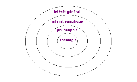Il y a un modèle que j’ai trouvé il y a quelques années et que je trouve très utile. Il est expliqué dans un excellent livre de Rebecca Manley (La saveur partagée, IVP). Elle regarde les conversations comme des oignons… Alors que nous « épluchons » des couches dans une conversation, nous allons de plus en plus profond dans l’esprit d’une personne. Habituellement, les conversations commencent par des questions d’intérêt général (Quel est votre travail ? Où habitez-vous ? Quel sport appréciez-vous ?). Puis nous posons davantage des questions d’intérêt spécifique (Qu’appréciez-vous dans votre travail ? Pourquoi avez-vous déménagé ? Où avez-vous grandi ?). Nous manquons fréquemment la couche suivante, mais elle est cruciale ; c’est la couche abstraite ou philosophique (Pourquoi êtes-vous étudiant en Histoire ? Êtes-vous satisfaits de ce que la psychologie vous enseigne au sujet de la nature humaine ? Quels aspects de votre éducation vous ont le plus affecté ? Quels sont pour vous les secrets d’une vie heureuse ?). Vient enfin la couche théologique (Que pensez-vous de ce que Dieu nous demande ? Que pensez-vous au sujet de Jésus mort sur la croix ?). Ceci peut être illustré graphiquement comme une série de cercles concentriques. L’idée est que, plus l’amitié s’approfondit et ainsi plus la confiance est gagnée, plus nous devrions graduellement aller vers des niveaux plus profonds. Nous ne devrions pas employer le modèle ci-contre comme une méthode rigide, mais c’est une manière extrêmement utile de focaliser et d’approfondir nos rapports avec tout le monde : conjoint, famille, croyants et non chrétiens.