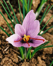 Le safran n’est cité qu’une fois dans la Bible. Il provient du crocus sativus de la famille des iridacées. On le trouve en Inde et en Italie du sud. C’est une poudre obtenue à partir des stigmates de la fleur (exemple : le safran du commerce), qui a un fort pouvoir colorant et est utilisée sous forme d’huile ou d’onguent. C’est une poudre assez chère, de couleur dorée et son symbole spirituel ne se trouve pas dans son odeur, mais dans sa couleur dorée qui évoque la gloire de Dieu.